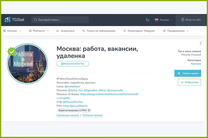 Четкая востребованная ниша. Владелец тг-канала публикует контент, который пользуется большим спросом среди тех, кто ищет работу в столице.