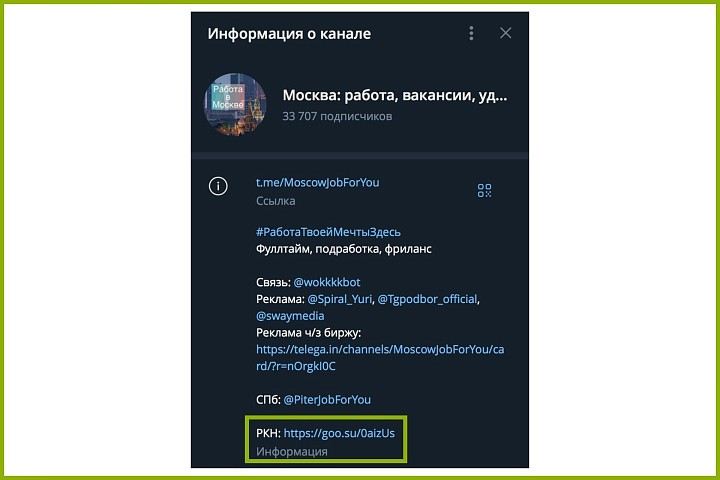Законная деятельность. Телеграм-канал зарегистрирован в РКН, поскольку у него больше 10 000 подписчиков.