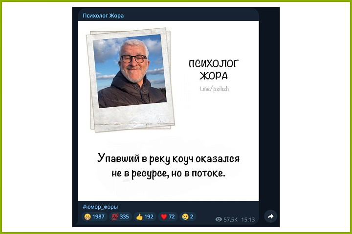 Автор тг-канала @psihzh тоже мог бы успешно монетизировать большую аудиторию через партнерский маркетинг. Реклама курсов приносила бы ему солидный доход, особенно если преподнести ее с юмором: «Жора — недипломированный психолог. А ты пройди программу от Института Smart — не будь как Жора». Узнаваемый тон-оф-войс вызовет доверие и простимулирует покупки.
