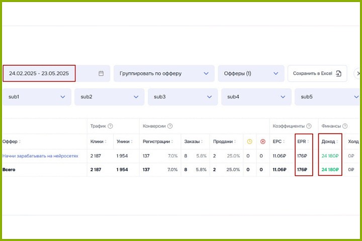Это когда значительная доля ваших посетителей совершает нужное действие: регистрируется, записывается на вебинар или покупает курс. В партнерском маркетинге 5% — уже неплохой результат, а 10% и выше — показатель эффективной работы с аудиторией и грамотно выбранного оффера.