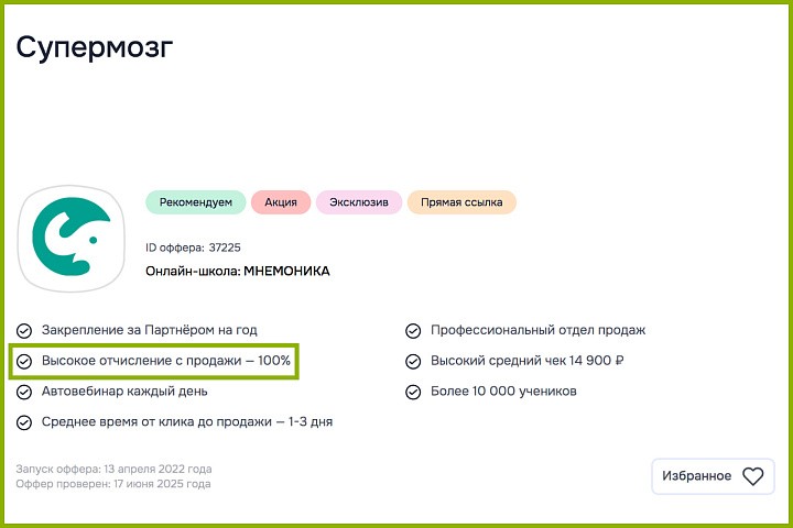 Фиксированная выплата за целевое действие по модели CPL обычно варьируется от 500 до 3000 ₽. А комиссионные могут достигать и 100% от стоимости продукта. В САЛИД, например, есть офферы, которые работают по модели lifetime — это значит, что доход можно получать все время, пока клиент тратит деньги на курсы.