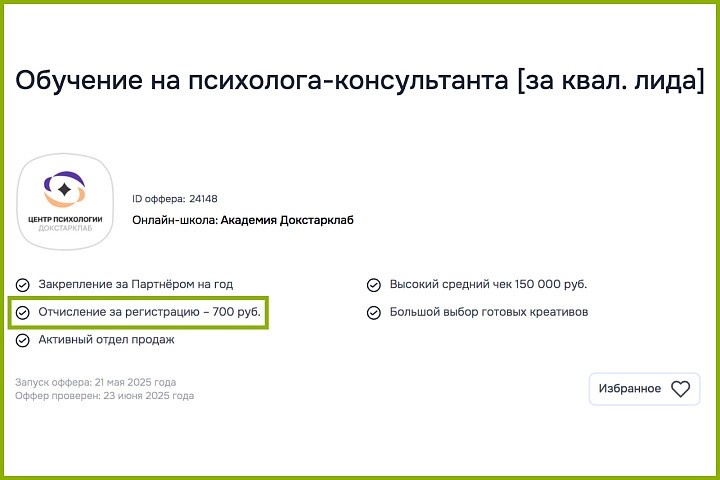 Схема оплаты оговаривается в оффере. Например, вот как это выглядит в каталоге CPA-сети САЛИД, которая специализируется на партнерках в образовательной нише: