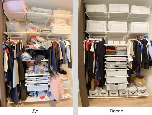 Сейчас у меня дома — уют и система. Муж сначала скептически относился, а теперь сам предлагает решения для хранения. И да, уже трое друзей попросили помочь им навести порядок — и мне это даже нравится!