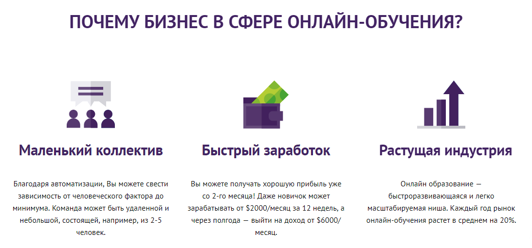 Мы обучаем запуску и масштабированию онлайн-школы, созданию удаленной команды, востребованным онлайн-профессиям (интернет-маркетолог), трансформации мышления и личной эффективности, инвестированию, созданию личного бренда и развитию финансового интеллекта. Здесь есть все, что поможет вам быстро стартовать в онлайне, найдя свою нишу и выйдя на доход, в который сейчас не можете поверить.
