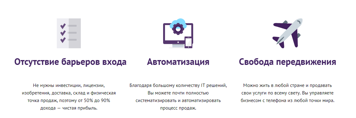 Мы помогаем строить автоматизированный онлайн-бизнес, который будет приносить почти полностью пассивный доход, или работать удаленно, путешествуя. Такой образ жизни позволяет вам иметь в запасе достаточно свободного времени на семью, хобби и друзей. «Marketinator» отличает от конкурентов индивидуальный подход к каждому клиенту.