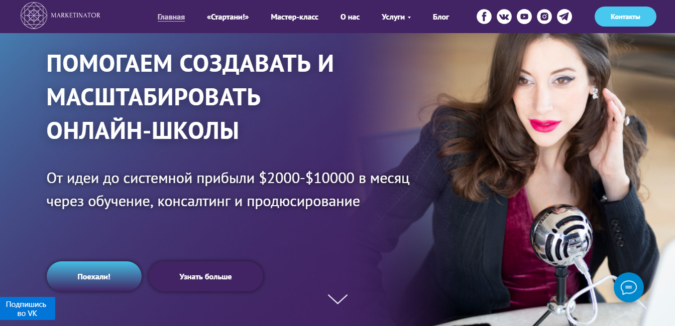 Marketinator – это онлайн бизнес-инкубатор Дарьи Шанс, автора таких онлайн-курсов как «Весь digital маркетинг», «Имя на миллион», «Суперкоманда для вашего бизнеса», «Стартани!», «Денежный эскалатор» и других. Эта площадка создана для всех, кто намерен уйти из найма, начать работать на себя и развивать полноценный бизнес в интернете.