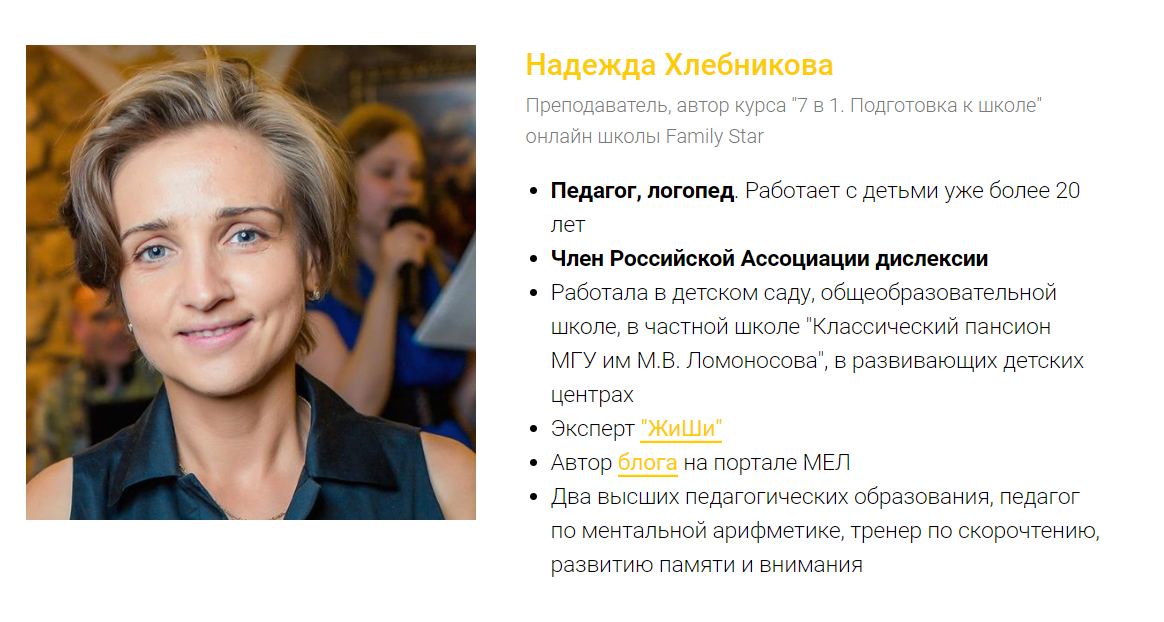 Онлайн-школа Family Star – это обучающие интернет-курсы и тренинги, сообщество родителей и учителей, где каждый может найти то, что нужно для развития малыша. Онлайн-обучение для детей помогает ребенку обрести знания и навыки, которые пригодятся ему в начальной и средней школе. Еще никогда подготовка к школе не была такой простой и интересной. Уроки по арифметике и чтению, письму и логике, тесты и задания, и все это в игровой форме, так что скучать будет некогда.
