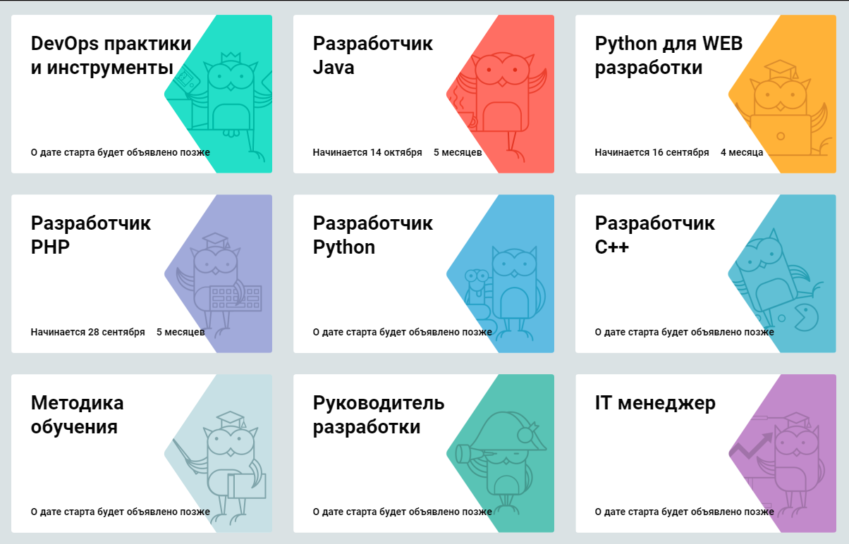 Обучают профессиямPython-разработчик, Fullstack разработчик (fullstack developer),Системный аналитик, PHP-разработчик, Бизнес-аналитик, Node.js разработчик, Разработчик игр – Gamedev, HR-специалист, Архитектор ПО, React-разработчик, Unity-разработчик, Бэкенд-разработчик (backend-developer), Java-разработчик, iOS-разработчик, HR-аналитик, Мультипликатор, Android-разработчик, Разработчик мобильных приложений, VR/AR разработчик, Верстальщик, Администратор Linux, Архитектор, Аниматор, TeamLead, Product manager, Финансовый аналитик