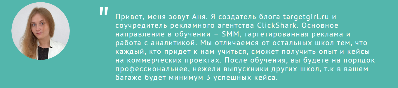 В школе маркетинга вы получите полный багаж знаний, узнаете, как начать удаленно работать и зарабатывать, познакомитесь с основами в области SMM и таргетированной рекламы. Не упускайте шанс сделать шаг к достижению цели, пройдите обучение и поймите, что все реально, нет ничего невозможного!