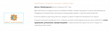 В школе «Пробуждение» вы приобретете, навыки яснознания и путешествия в прошлые жизни, новых друзей, которые помогут вам в ваших начинаниях, и сможете открыть сердце на пути к Единству.