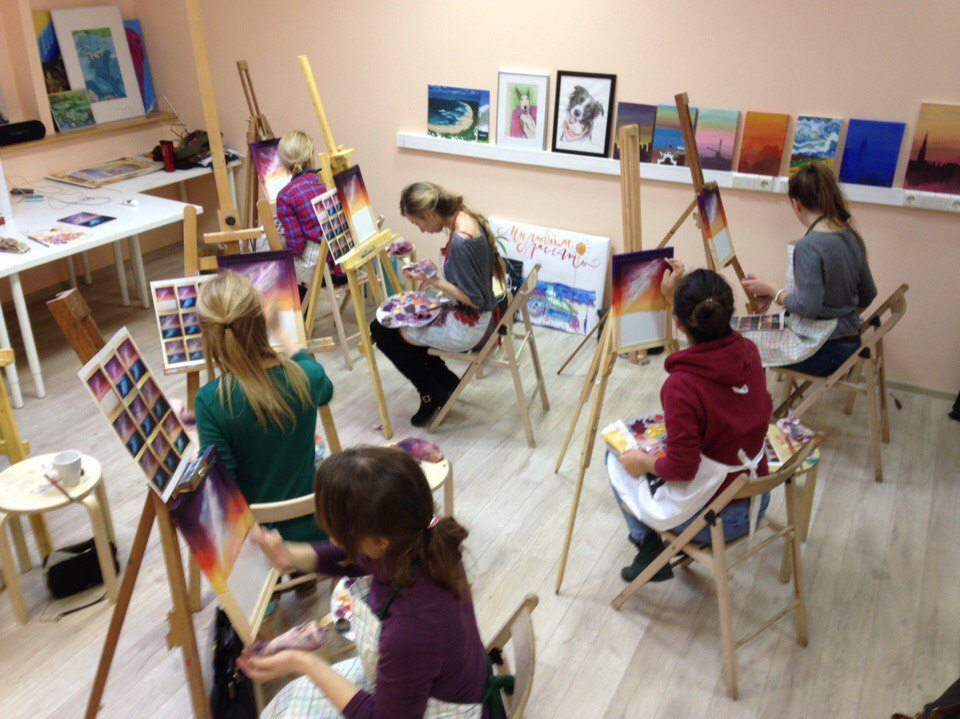 Я и мои друзья никогда не держали кисточку в руках! Но это было и интересно! И эта была задача к Анастасии: научить! Скажу честно, когда я увидел оригинал — я подумал: "КАК ЭТО МОЖНО НАРИСОВАТЬ?", но когда я посмотрел на преподавателя я понял "КОНЕЧНО, МОЖНО!". Анастасия показала простые правила и понеслось! Я не помню как, я мешал краски, рисовал! Я думал "малевал", получал за это строгое замечание, выучил слово "писать"! Да! Мы не малюем, а ПИШЕМ! Выучить всем!!! И вот итог! У меня в руках МОЯ картина, которую я показал всем, а еще эмоций на целую неделю: "Я сам нарисовал"! Поэтому идите к Насте, рисуйте!