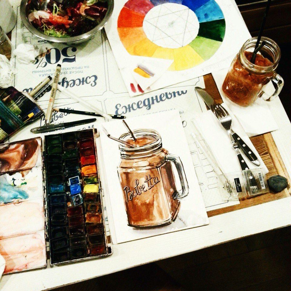 В общем, я довольна и очень счастлива, не пропустила еще ни одного занятия, каждый раз погружаюсь на три часа в краски, рисунок и перспективу, забываю о насущных проблемах и тревогах и просто доверяюсь Насте, которая ведет меня по лабиринтам живописи. И это волшебно!
