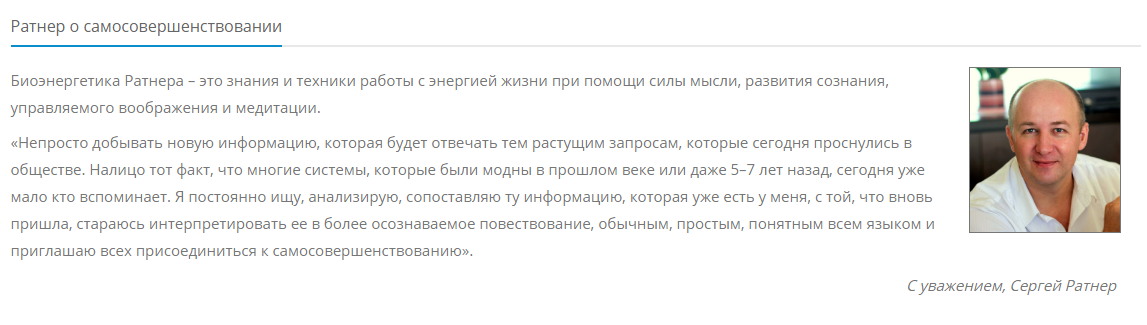 Центр «Секреты Силы» был основан Сергеем Ратнером, биоэнергетиком, ясновидцем и целителем. Во время обучения, вы получите только проверенные результативные техники, основные на свыше чем 20-летнем практическом опыте.