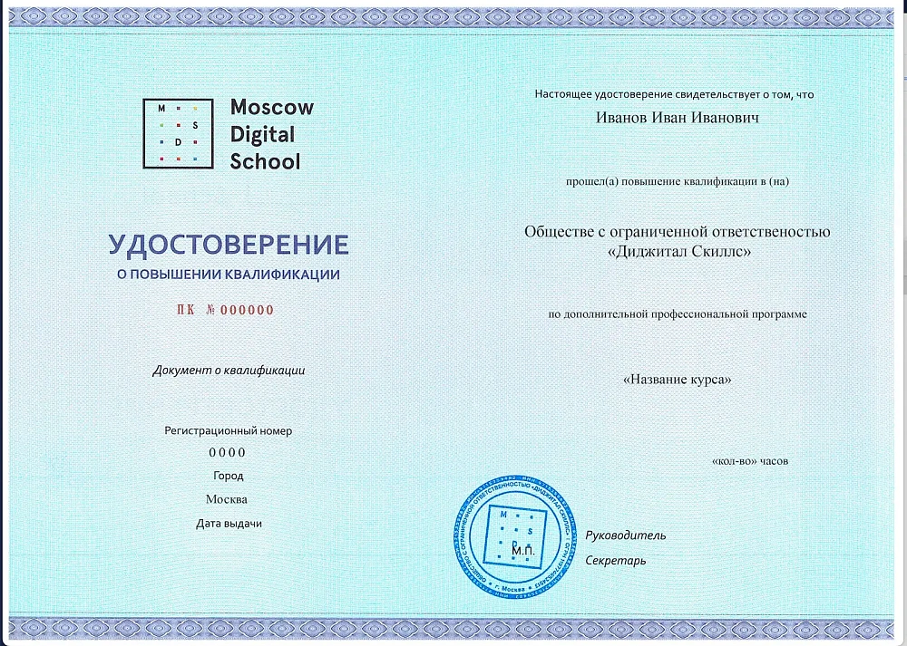 Документ об обученииСертификат Успешное прохождение итоговой аттестации