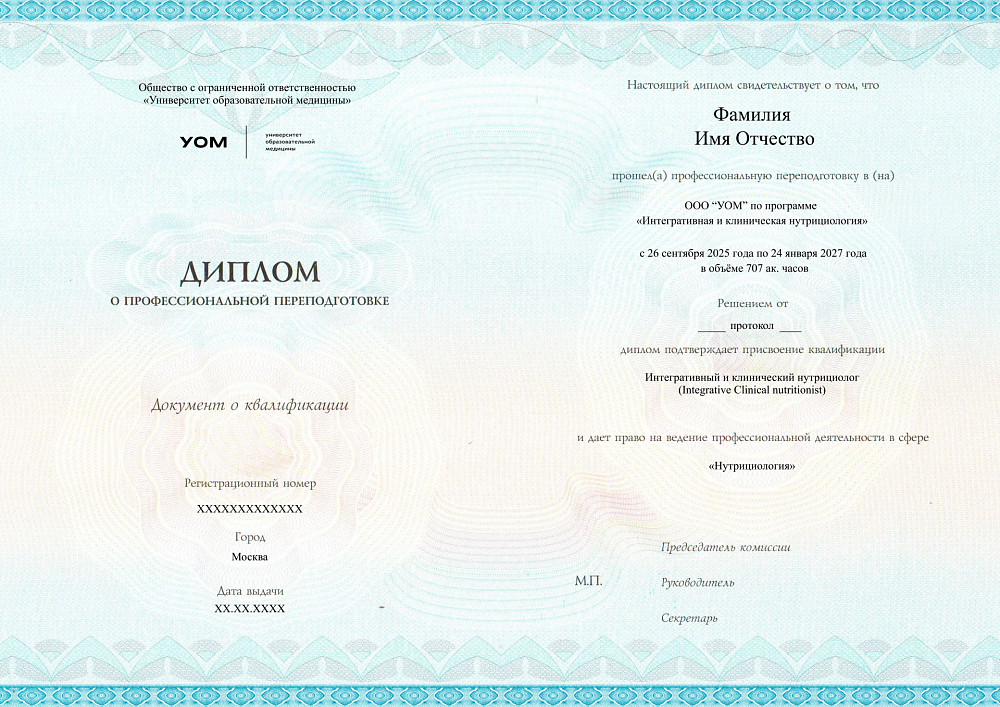 Профессиональная переподготовка «Нутрициология и превентивное персонализированное управление здоровьем»