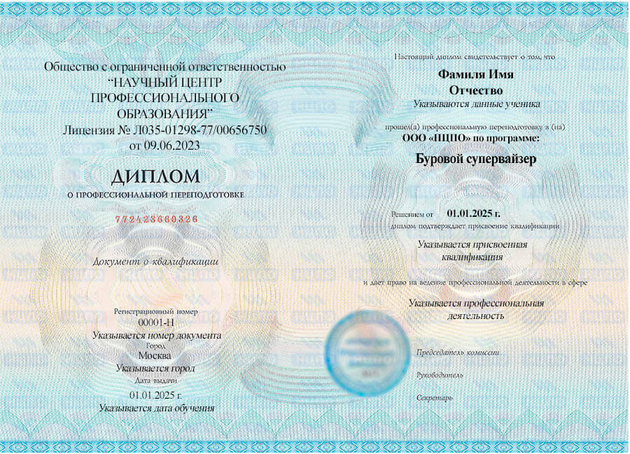В итоге вы получите знания и навыки, необходимые для эффективного руководства буровыми работами. А квалификация будет подтверждена дипломом о профессиональной переподготовке.