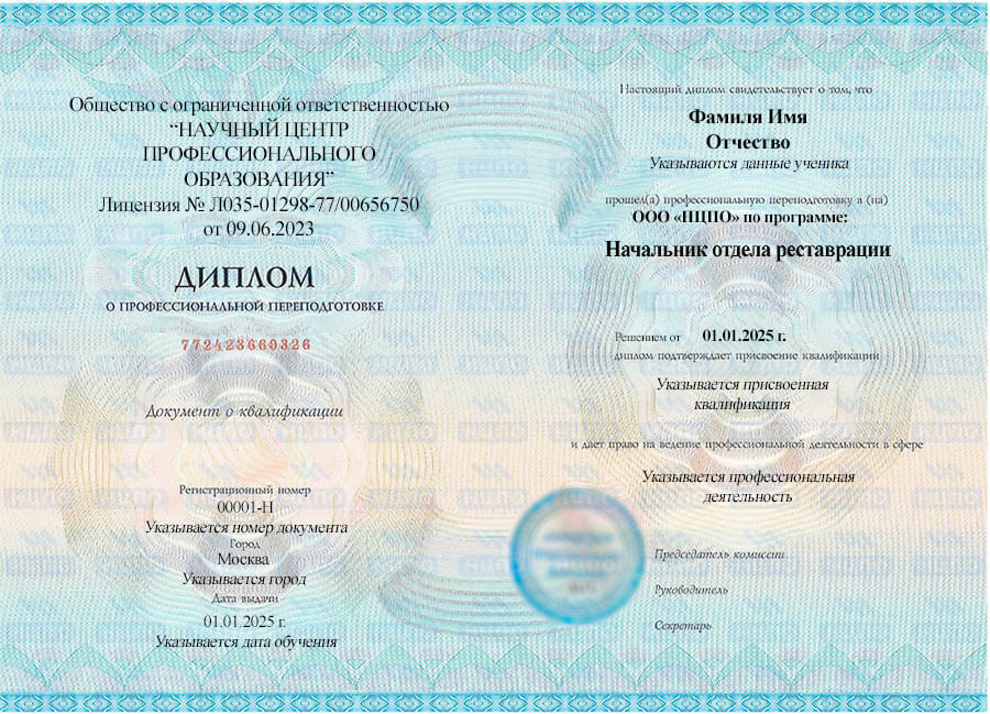Профессиональная переподготовка «Начальник отдела реставрации»