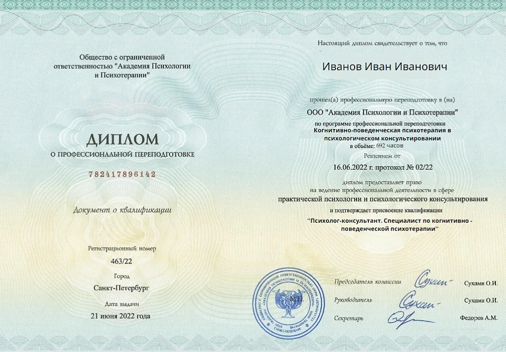 Программа профессиональной переподготовки для желающих стать психологами. Курс длится 12 месяцев и содержит все необходимые знания и навыки для успешного начала карьеры в психологическом консультировании. Курс рассчитан на тех, кто уже имеет высшее образование и хочет перейти от теории к практике.