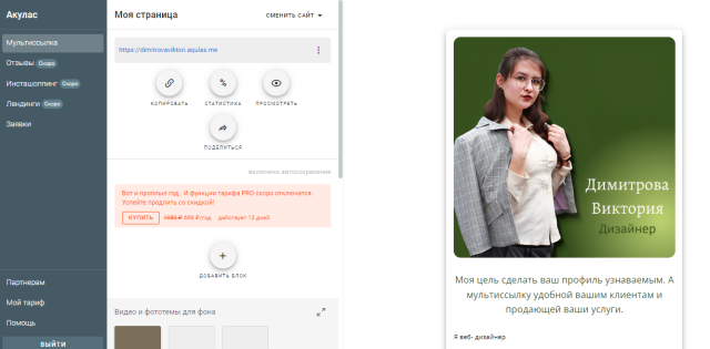 Мультиссылка от Aqulas — создать красивую страницу просто.